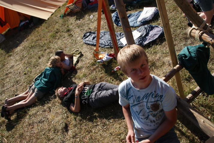 Dagen i dag er gået med afslapning for det meste. Børnene har haft tid til at se lejren, opleve stemningen for alvor og ellers bare hygge sig med hinanden. I eftermiddags havde vi besøg af Cecilies mor, som havde hindbærsnitter med. De skulle eftersigende smage godt – jeg har stadig min til gode.